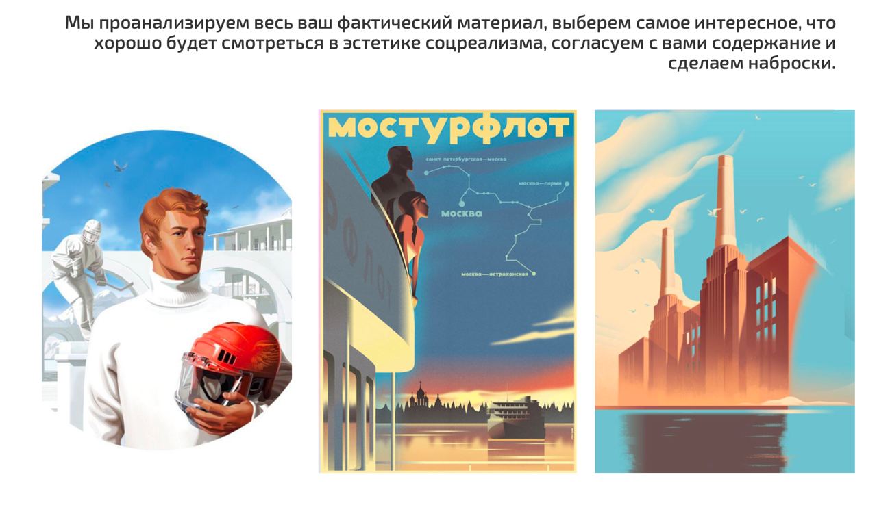 Мы предложили клиенту в рамках разработки концепции календаря на 2022 год подготовиться к юбилейному году (55 лет компании) с новыми визуальными решениями: обратились к направлению соц-арт и созданию в этом стиле авторских иллюстраций.